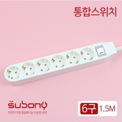 SUBONY Item No. 71669 Integrated Switch Multi-Tab 6 Outlet 1.5M