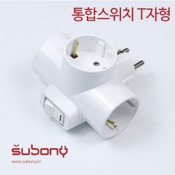 SUBONY Item No. 71734 Attachable Multi-socket T-shaped 3-Outlet White